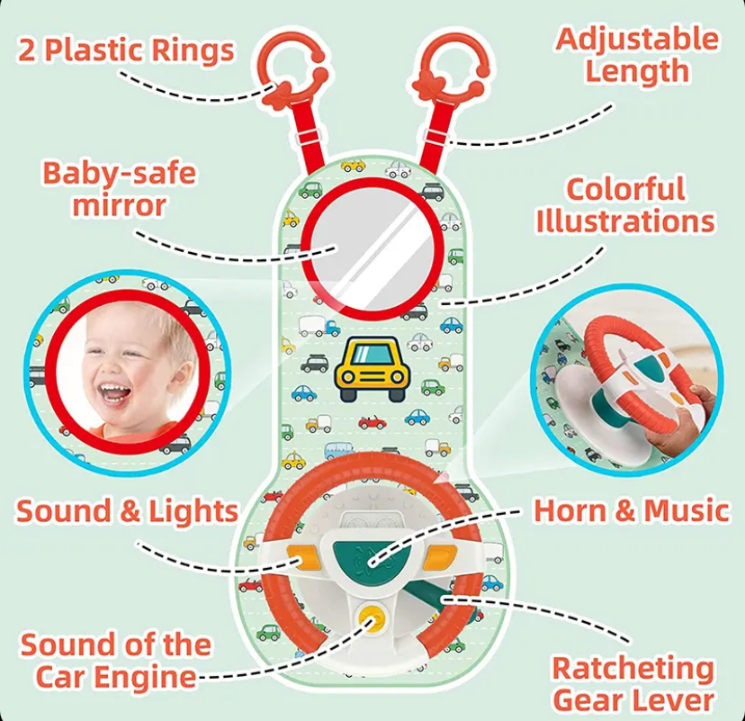 - دارای یک تشک انعطاف پذیر است که فرمان روی آن قرار می گیرد، به راحتی با موقعیت کودک سازگار می شود