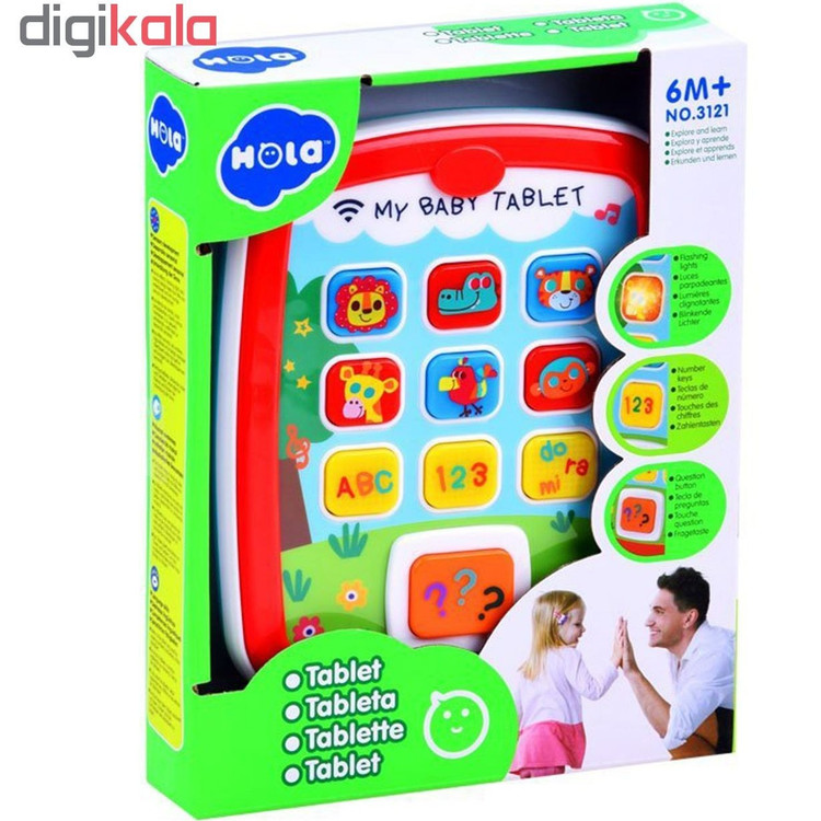 تبلت موزیکال بزرگ هولی تویز یکی از محصولات آموزشی برند هولی تویز میباشد . آموزش از طریق این تبلت موزیکال با استفاده از پرسش و پاسخ صورت می گیرد. قابلیت پخش صدا و موزیک به همراه رقص نور هر کودک خردسالی را جذب خود می کند . جنس این اسباب بازی با کیفیت از پلاستیک ABS فاقد مواد مضر و رنگ های شیمیایی می باشد. تبلت آموزشی بزرگ هولی تویز با جلوه های صوتی و نوری جذاب به کودک شما در یادگیری حروف انگلیسی و کلمات و اعداد کمک می کند. این محصول به دلیل نداشتن لبه های تیز و مواد مضر،برای کودکان بالای 6 ماه بسیار مناسب است و یک بازی آموزشی جذاب به حساب می آید. هنگام فشردن دکمه علامت سوال،تبلت از کودک سوال های مختلفی میپرسد و با راهنمایی و نور و صدا به کودک کمک میکند تا جواب صحیح را از میان دیگر گزینه ها پیدا کند.