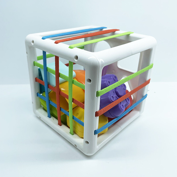 یک عدد مکعب هوش 10 قطعه پازل جاگذاری با اشکال هندسی و میوه