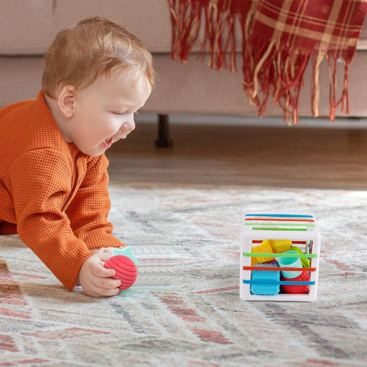 این محصول از سری اسباب بازی های فکری برند هانگر به حساب می آید. این برند محصولات خود را با بالاترین کیفیت ممکن تولید می کند. مکعب هوش و جاگذاری هانگر شامل یک مکعب و 10 تکه پازل می شود. ابعاد مکعب 12در 12 در 12 سانتی متر است. بازی با این محصول به دو قسمت تقسیم می شود. قسمت اول بازی آسان تر است. تمامی دیواره های مکعب، به غیر از یک وجه آن مشبک و پارچه ای هستند. کودک باید تلاش کند تا تکه های پازل را از این دیواره مشبک پارچه ای عبور دهد. قسمت دوم بازی کمی پیشرفته تر می شود. یک دیواره مکعب برای جای گذاری اشکال مشخصی طراحی شده است. در این حالت کودک باید تلاش کند هر شکل را از خانه مخصوص به خود عبور دهد و به درون مکعب بیندازد. این اشکال شامل، چهار شکل دایره، مربع، مثلث و ستاره می شوند. بازه سنی مناسب برای بازی با این اسباب بازی حدوده هجده ماهگی (یا کمی قبل از آن) به بعد است. بازی با این اسباب بازی سبب افزایش قدرت تمرکز و توجه کودک می شود. اسباب بازی های پازلی تاثیر شگفت انگیزی در رشد مهارت های فکری کودکان دارند. البته بازی با آن ها معمولا تحت نظارت والدین و با کمک پدران و مادران انجام می شود. برای تشویق بهتر کودکان در جهت انجام بازی، استفاده از رنگ ها و اشکال جذاب و متنوع توصیه می شود.