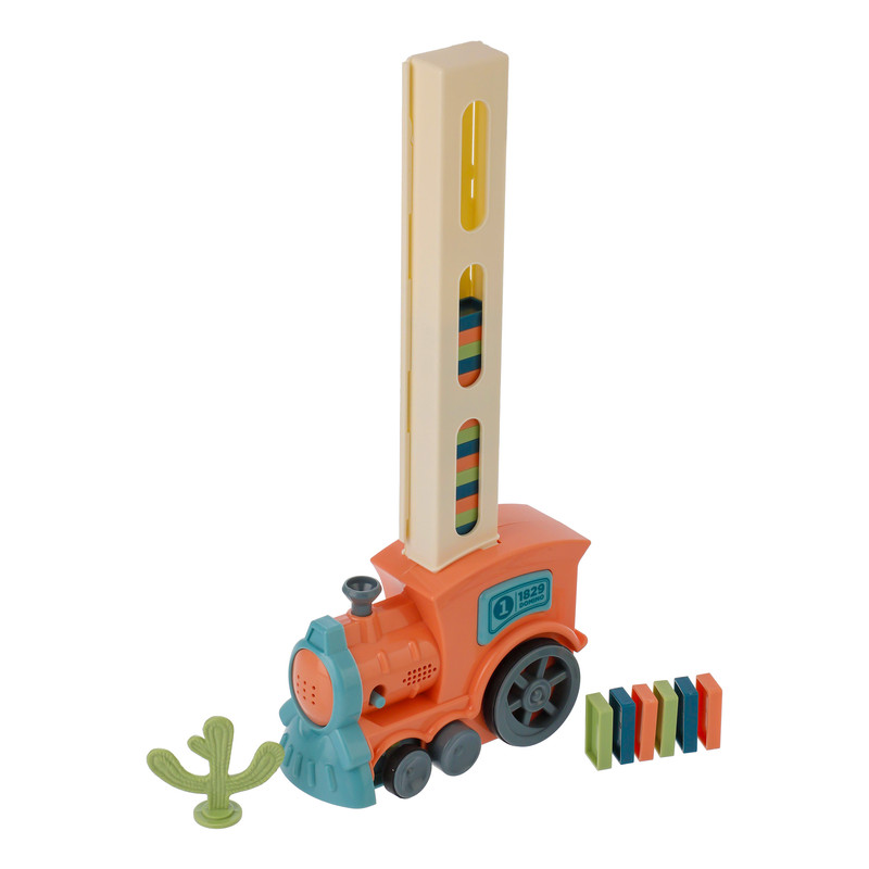 دومینو نوعی بازی است که به وسیلهٔ قطعههای مستطیلی کوچکی انجام میشود و نوعی از سرگرمی دومینو است که در آن فرد مهره های دومینو را پشت سرهم چیده و طرح ها و شکل های متنوعی را ایجاد می کند، سپس با وارد کردن ضربه به اولین مهره ، سقوط مهره ها آغاز و تا آخرین مهره ادامه می یابد و حاصل خلاقیت فرد با سقوط مهره ها مشخص شده و لذت زیادی برای فرد و بازدیدکنندگان ایجاد می کنه، اما شاید اغلب چیدن قطعات دومینو برای کودکان سخت و خسته کننده باشه، ما ماشین دومینو چین TRA 354 رو به شما عزیزان پیشنهاد میکنیم که طراحی خلاقانه و سرگرم کننده ای داره و بکمک اون دیگه لازم نیست خودتون زحمت چیدن قطعات رو بکشید ، چون ماشین دمینو چین در حین حرکت قطعات را در مسیری با پیچ و خم و فواصل مناسب میچینه و کودک با خراب کردن آن لذت بیشتری از بازی میبره. این محصول بخاطر داشتن بسته بندی مناسب علاوه بر استفاده شخصی میتونه انتخاب مناسبی برای هدیه به عزیزانتون هم باشه و به کمک اون می تونید ساعات سرگرم کننده ای رو برای عزیزانتون ایجاد کنید. این محصول دارای یک خشاب است که با پرکردن آن با دومینوها که تعداد آن 60 عدد می باشد و قرار گرفتن در پشت قطار و روشن کردن قطار شروع به حرکت و چیدن دومینوها روی سطوح کرده و با چرخواندن دودکش قطار می توانید به مسیر حرکت قطار جهت دهید. همچنین یک درختچه پلاستیکی برای معکوس کردن حرکت دومینوها در آن قرار داده شده است. این قطار به وسیله دو باطری قلمی روشن می شود. همچنین دومینو های موجود قابل استفاده به شکل مجزا هستند.