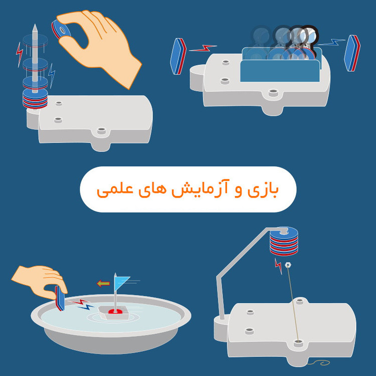بچهها دوست دارند محیط پیرامون خود را کشف کنند. یکی از این موارد که برای کودکان بسیار جذاب است، آهن رباست. «کیت آموزشی مدل دانش مغناطیس و آهنربا magnet science » به کودکان کمک میکند تا 12 آزمایش متفاوت را انجام دهند و اشکال متفاوت و متنوعی بسازند ، وزنه ی معلق ، ماشین مسابقهای، قطبنما مغناطیسی و یک آویز جادویی و... بسازند و در حین بازی با علم فیزیک و آزمایشهای مختلف آشنا شوند. این محصول متفاوت و خلاق به کودکان کمک میکند تا کشف کنند آهنربا چیست و چگونه کار میکند. به چه اجسامی میچسبد و چه چیزهای مختلف و جالبی با آن میتوان ساخت. این کیت در یک بسته به ابعاد26x21x6 سانتیمتر قرارگرفته است. کودکان و نوجوانان را تشویق به کشف دنیای پیرامون خود کرده و به آنها کمک میکند تا با ساخت کاردستیها به طور ساده محیط اطراف خود را کشف کنند و هم چنین با علم فیزیک و مغناطیس آشنا شده و علاقه مند شوند.