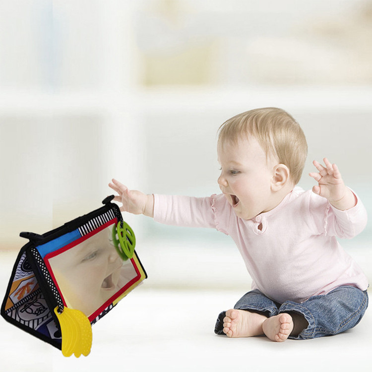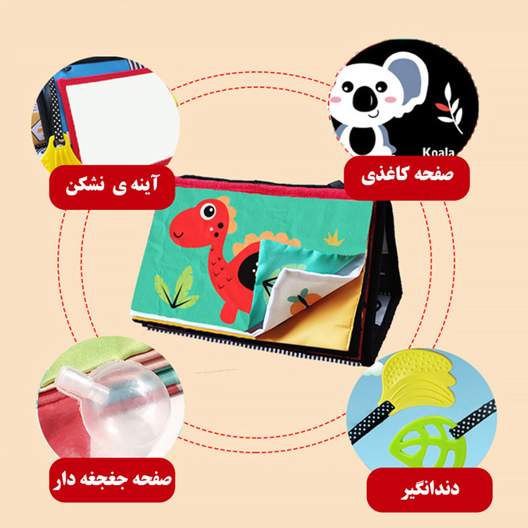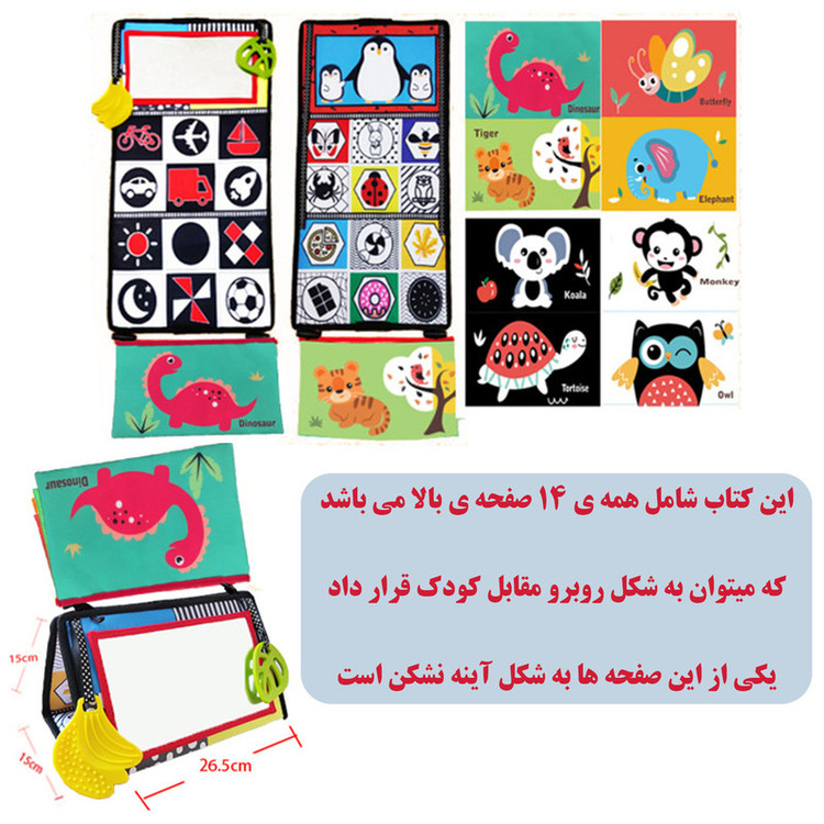 دو عدد دندان گیر کتاب آینه دار تاشو استندی کتاب پارچه ای جغجغه دار