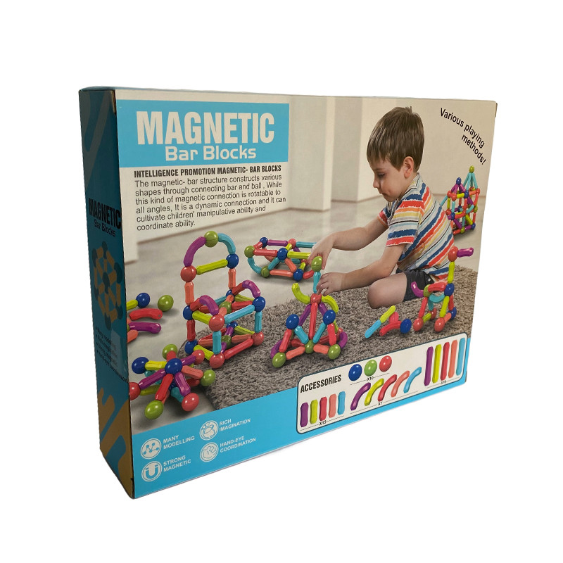 این مجموعه یک اسباب بازی خلاقانه با قدرت مغناطیسی است، که امکان ساخت صدها طرح هندسی را برای کودکان فراهم می آورد.با استفاده از 42 قطعه از میله و توپ مغناطیسی ، کودک شما شروع به شناخت مبانی مغناطیس و گرانش می کند. اسباب بازی مگنتی هم به عنوان اسباب بازی پسرانه و هم اسباب بازی دخترانه محبوبه. هدیهای که هر کودکی ساعت ها مشغول بازی و سرگمی می باشد و با داشتن رنگها، شکلها و مدلهای پاستلی این اسباب بازی مگنتی باعث جلب توجه کودکانتان می شود و همچنین قدرت تخیل و مهارت دستورزی کودکانتان را افزایش می دهند. اسباب بازی مگنتی از مواد با کیفیت بادوام ساخته شده . کودکان همچنین می توانند حروف الفبا، اعداد، شکل های اولیه حیوانات را با آنها تمرین کنند. اسباب بازی مگنتی بسیار متفاوت و جذاب است که دو یا چند کودک می توانند با آن بازی کنند و با هم سرگرم شوند. اسباب بازی مگنتی مانند حل پازل مفید است و به رشد مهارت های حرکتی خوب مغز کودک دلبندتان کمک می کند.