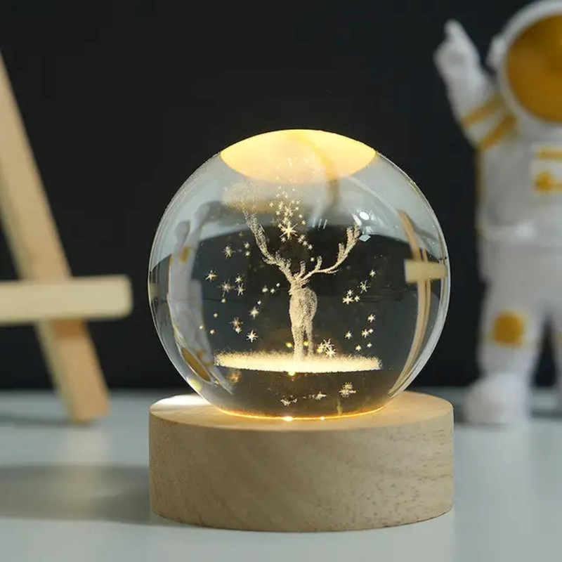چراغ خواب گوی کریستالی ۸ سانت طرح گوزن